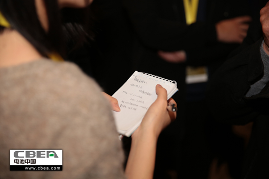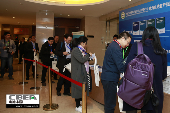 圖為參會嘉賓正在排隊領取動力電池應用分會提供的行業研究報告