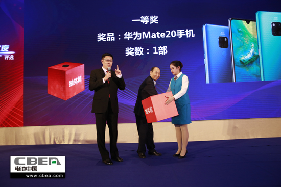 圖為明冠之夜 2018第二屆中國動力電池行業“鋰想獎”頒獎盛典現場抽獎環節