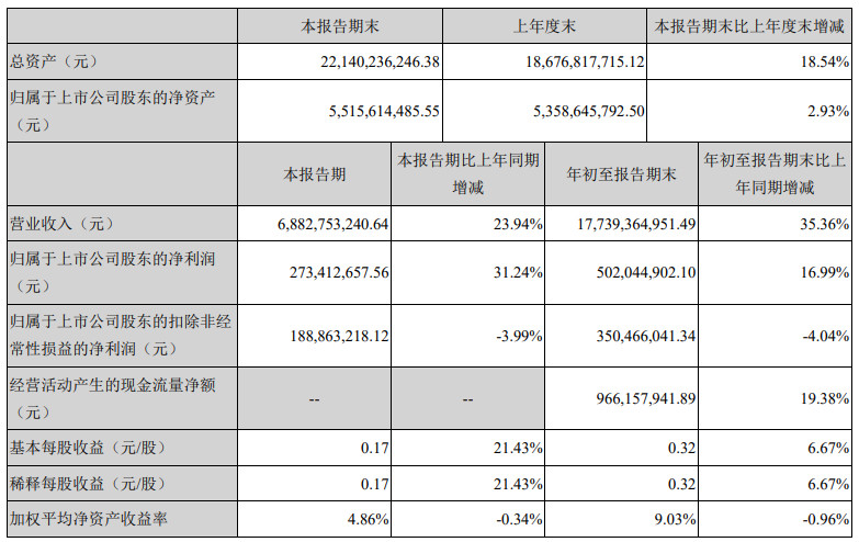 欣旺達2019年第三季度財報顯示,今年7-9月,欣旺達實現營業收入68.83億元,比上年同期增加23.94%;凈利潤2.73億元,同比增加31.24%。