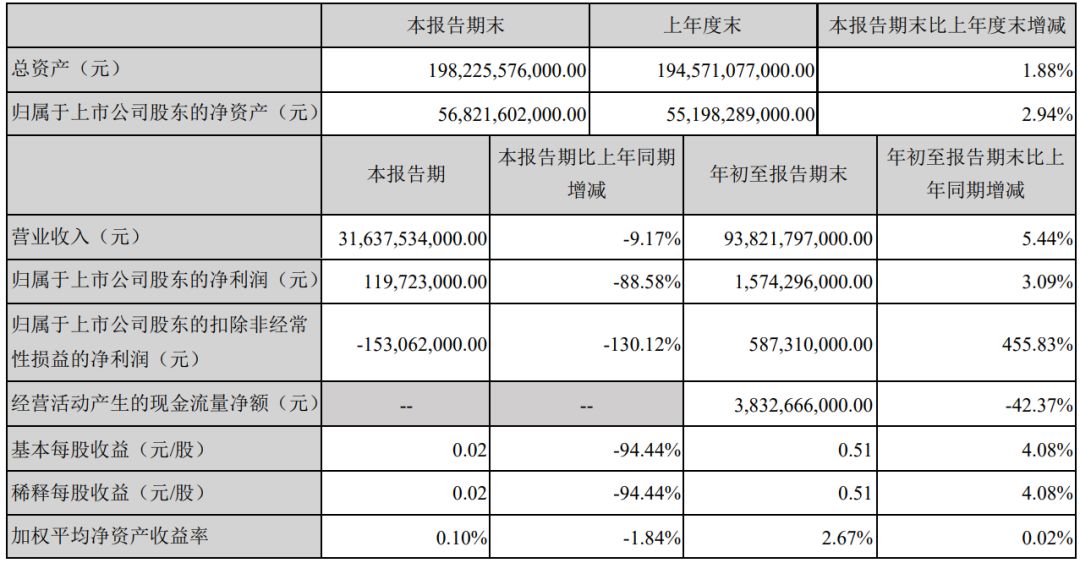 比亞迪日前發布2019年第三季度報告。報告顯示,2019年第三季度,比亞迪實現營業收入316.38億元,同比下降9.17%;凈利潤1.2億元,同比下降88.58%。
