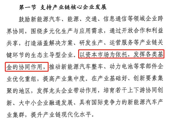 值得注意的是,本月初,國家工業(yè)和信息化部在發(fā)布的《新能源汽車產業(yè)發(fā)展規(guī)劃(2021-2035年)》(征求意見稿)中提出,以資本市場為依托,發(fā)揮各類基金的協同作用,推動新能源汽車整車、動力電池等零部件企業(yè)優(yōu)化重組,提高產業(yè)集中度。