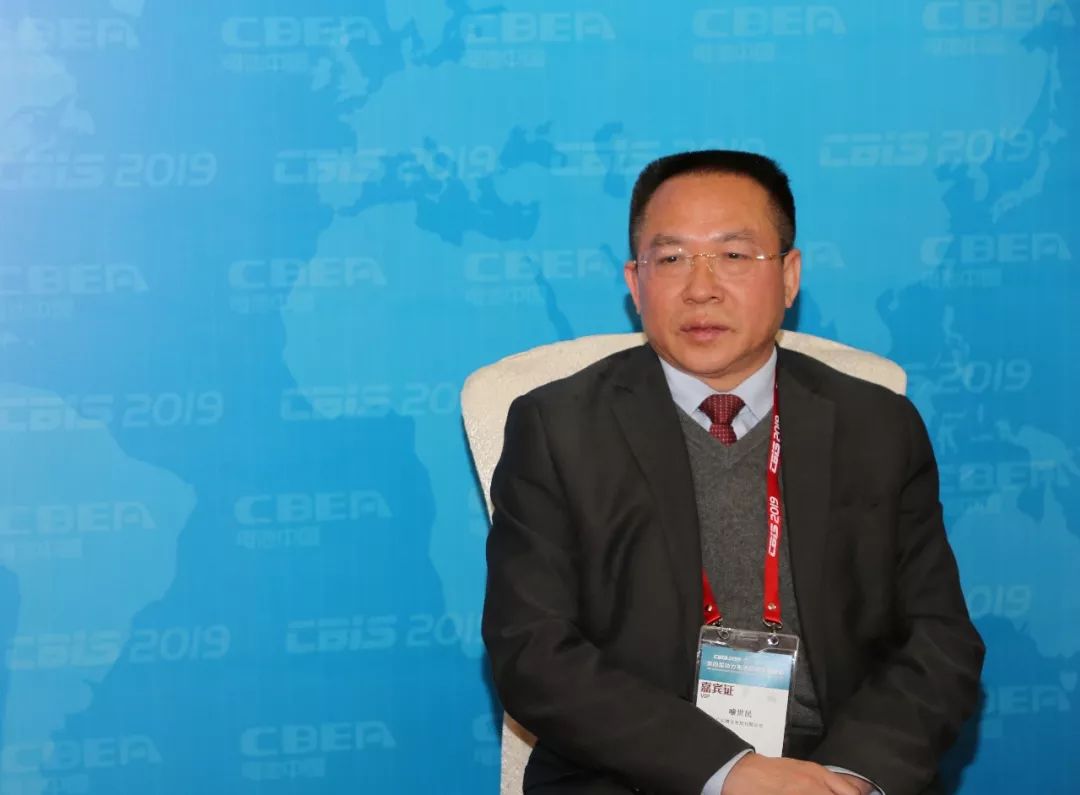 圖為廣東鴻寶科技有限公司董事長喻世民接受采訪