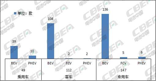 從車型看,新能源乘用車有49款,新能源客車有112款,新能源專用車有7款。