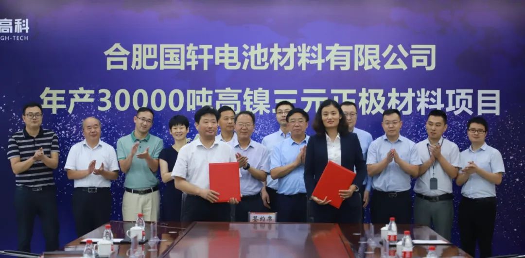 根據簽約協議,國軒年產30000噸高鎳三元正極材料項目將建設在合肥廬江高新技術產業開發區,由合肥國軒電池材料有限公司投資建設,占地約350畝。