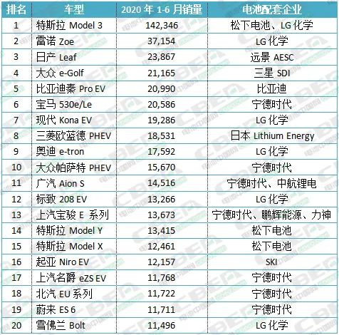 實(shí)力揭秘丨全球TOP20暢銷車型都用誰家電池?