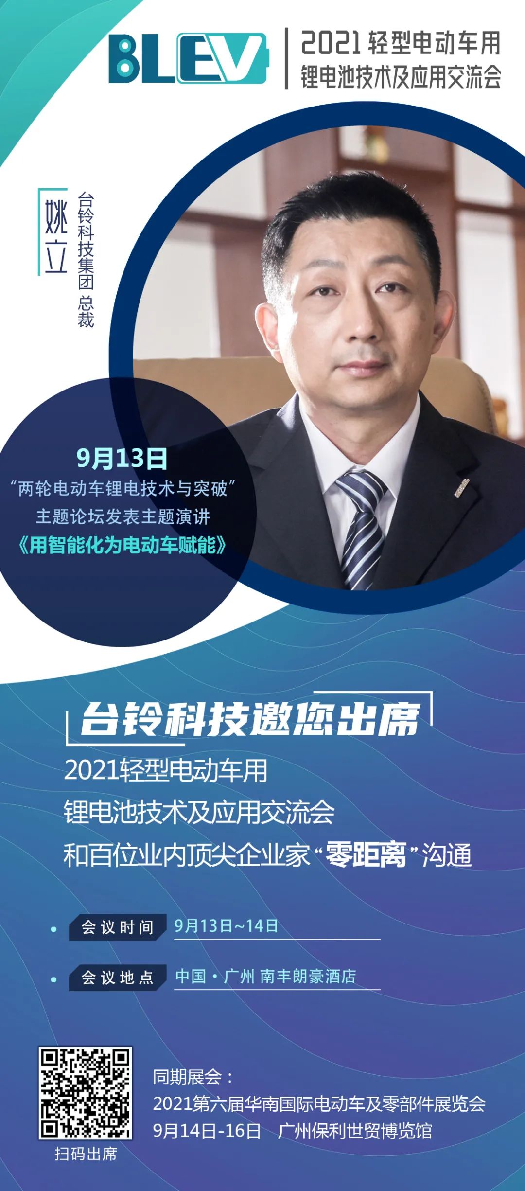 臺鈴集團總裁姚立將出席“2021輕型電動車用鋰電池技術(shù)及應(yīng)用交流會”