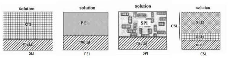 對于這些有機/無機組分的構(gòu)成形態(tài)及作用,文獻里也提出了各種各樣的模型,包括SEI/PEI/SPI/CSL等。不同的模型提出了不同的電化學(xué)模擬簡化原則,在電化學(xué)等效電路中被當(dāng)做不同的R/C電路。具體可以參見相關(guān)的電化學(xué)書籍和文獻。(好吧,其實是我也看不懂)