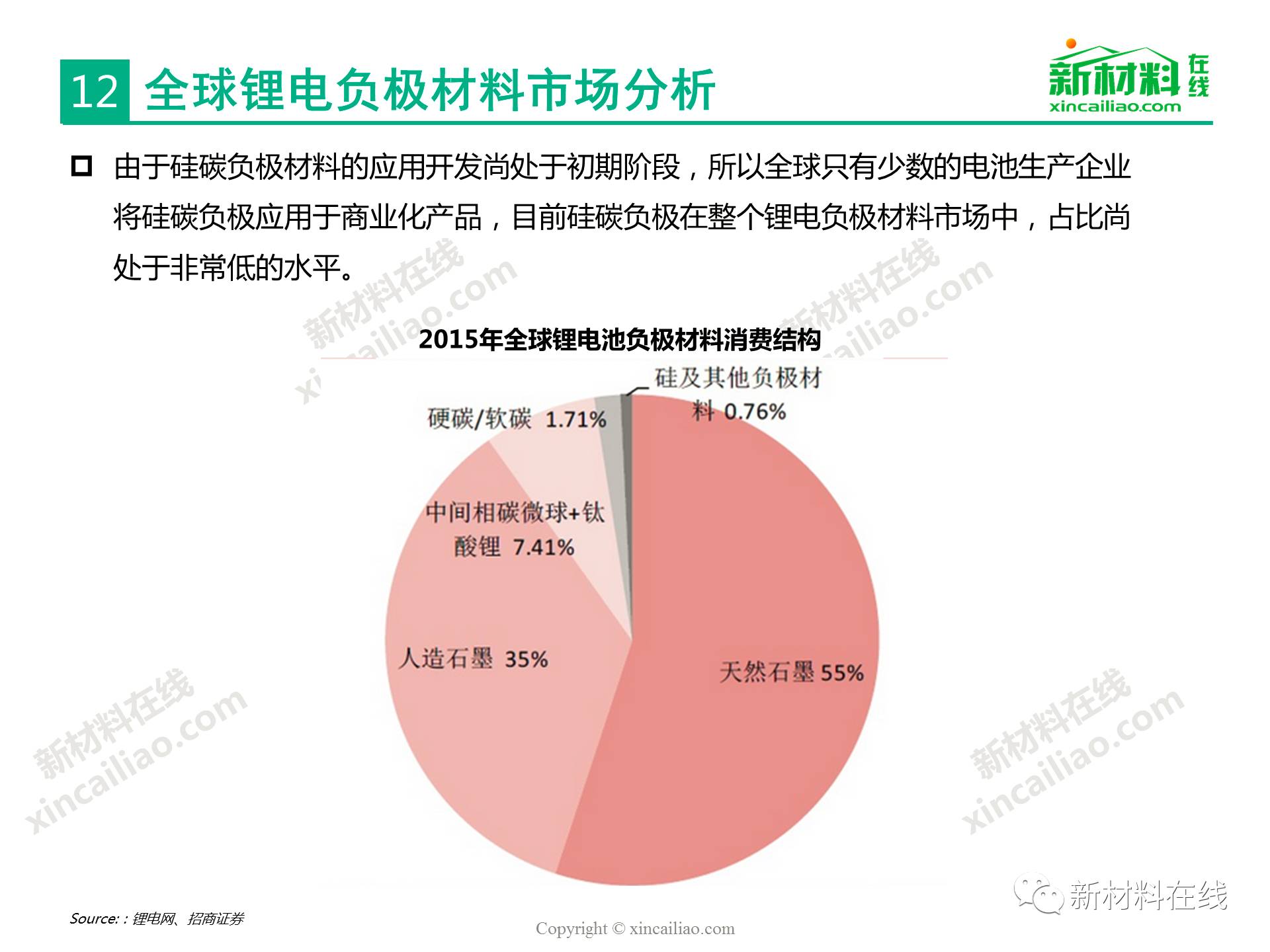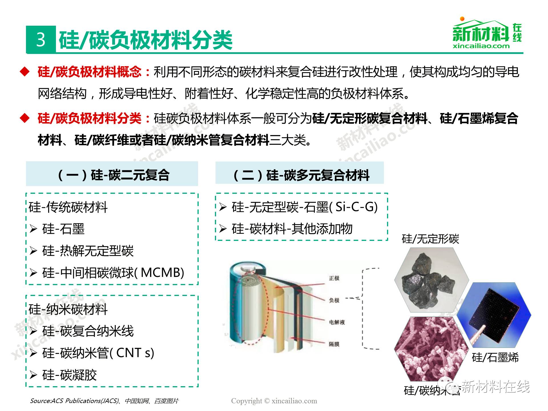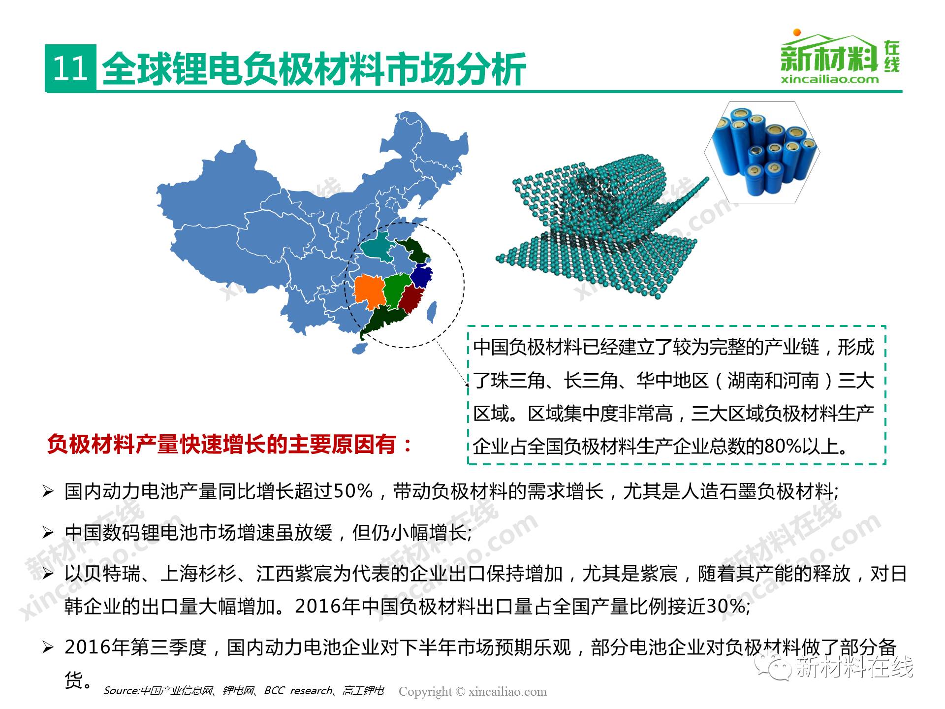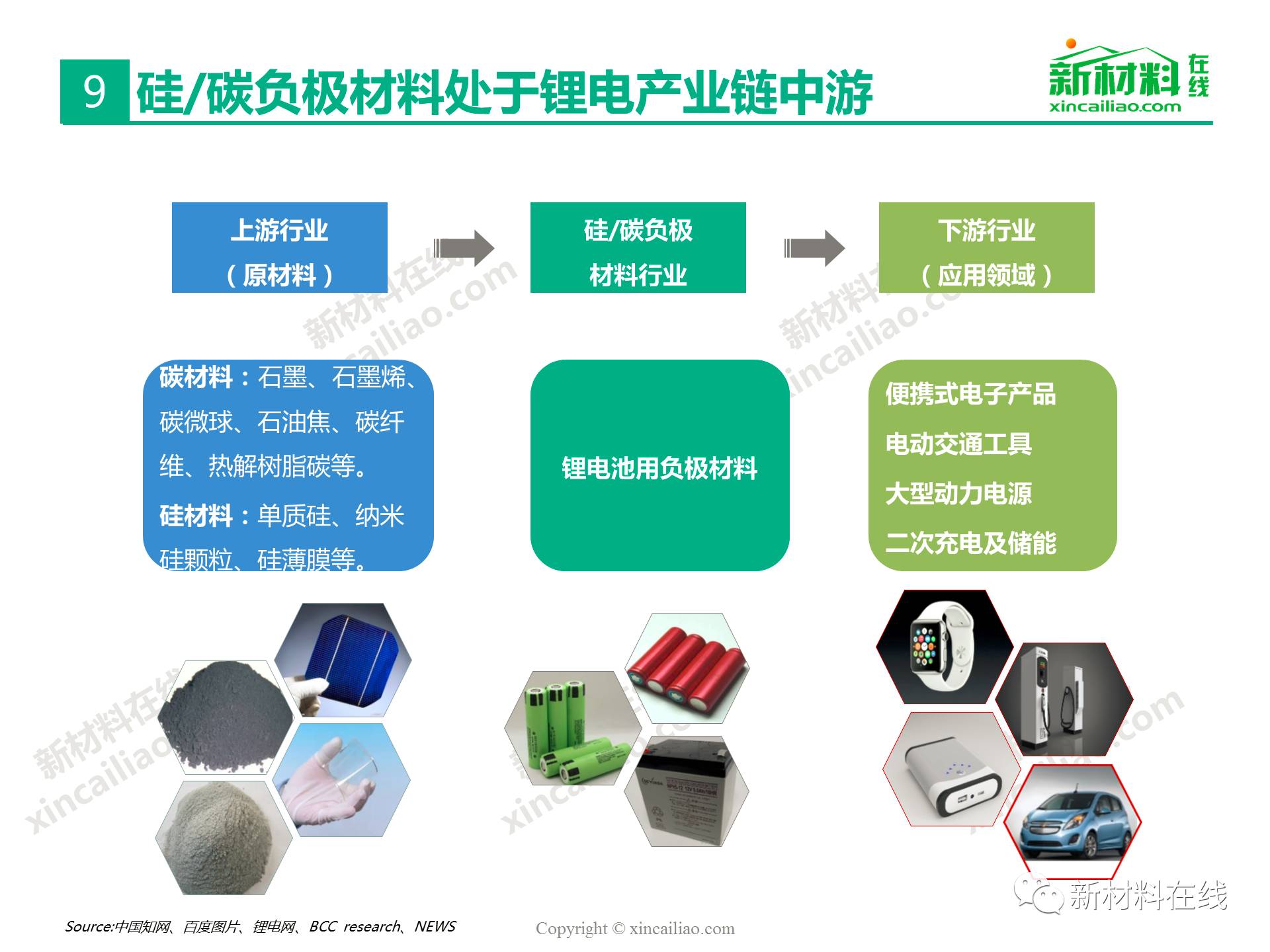 目前鋰離子電池負極材料主要包括石墨碳、硅的復合物、錫與碳的復合物、鈦氧化物、金屬鋰等,主要的性能指標比較如表16所示,其中,硅/錫/碳、金屬鋰的比容量相對于石墨實現了質的提升,將是未來高比能鋰電的新選擇,而鈦氧化物(鈦酸鋰材料)主要提高循環及快充性能。本文主要呈現的是2017全球硅碳負極材料研究報告。