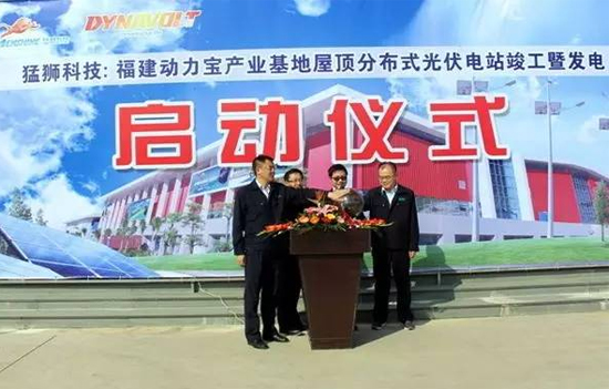 2015年12月31日,猛獅科技福建動力寶產(chǎn)業(yè)基地屋頂分布式光伏電站竣工并正式投入運行,猛獅科技副董事長賴其聰、副總裁王亞波、李青海,福建動力寶總經(jīng)理周錫方等出席啟動儀式。