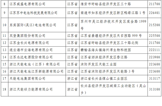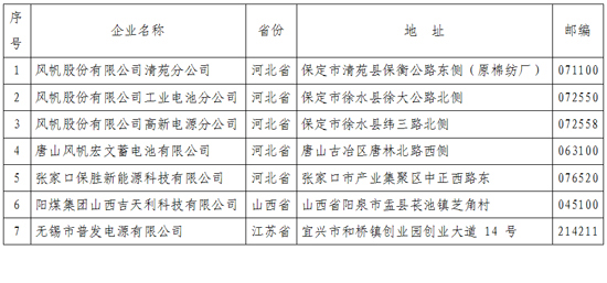 《鉛蓄電池行業(yè)規(guī)范條件》企業(yè)名單(第一批)