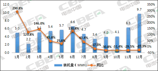 圖1:2019年動力電池月度裝機量及同比