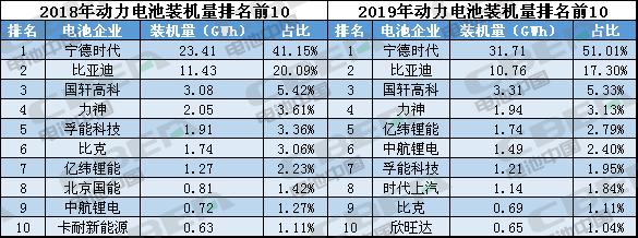 Li+研究│2019年動力電池裝機量TOP10企業 6增4降