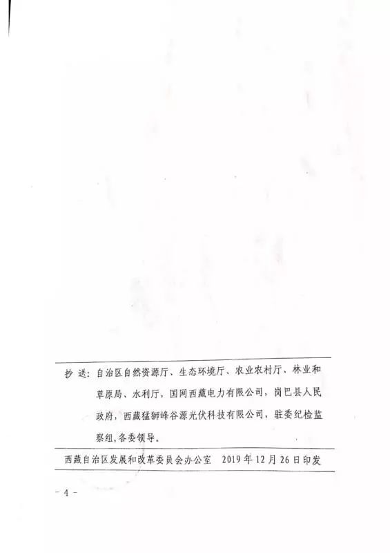 12月26日,西藏自治區發展和改革委員會下發《關于西藏猛獅峰谷源崗巴縣40兆瓦并網光伏儲能電站項目納入首批光伏儲能示范項目的通知》(藏發改能源〔2019〕877號),批復同意西藏猛獅峰谷源崗巴縣40MW光伏+193MWh儲能項目納入西藏首批光儲示范項目。文件肯定了西藏猛獅峰谷源崗巴縣40兆瓦并網光伏儲能電站項目推廣高原高海拔地區儲能系統的積極示范作用。