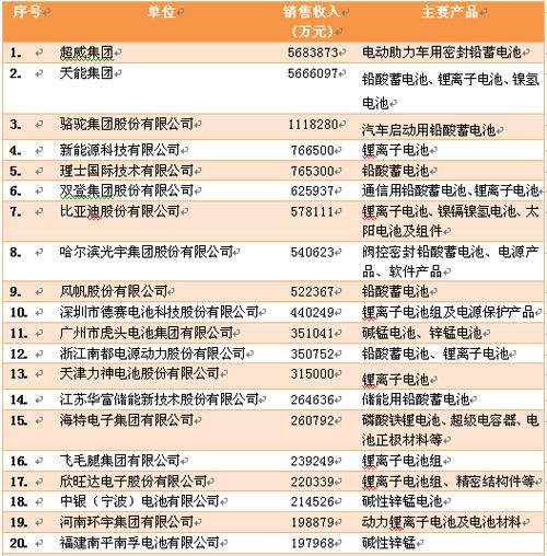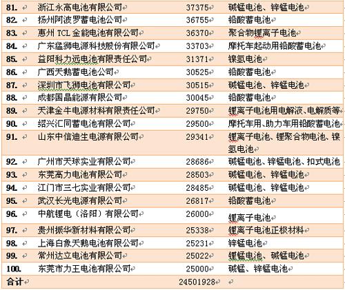 2013年中國(guó)電池行業(yè)百?gòu)?qiáng)企業(yè)名單發(fā)布