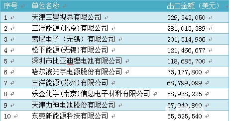 (2013年我國鋰離子電池前十大出口企業)