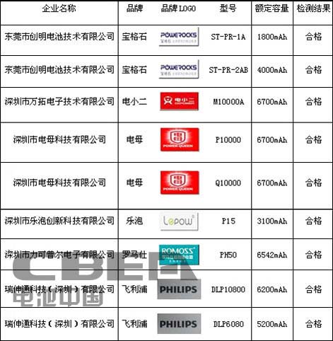 首批經測試符合《USB接口類移動電源》標準的型號清單