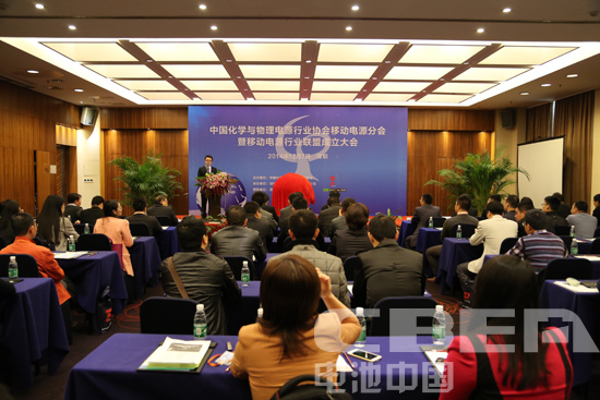 圖為中國化學(xué)與物理電源行業(yè)協(xié)會(huì)移動(dòng)電源分會(huì)暨移動(dòng)電源行業(yè)聯(lián)盟成立大會(huì)現(xiàn)場(chǎng)