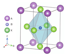鈣鈦礦的結(jié)構(gòu)是ABX3的形式。這種結(jié)構(gòu)在每個角共享一個BX6正八面體,其中B是金屬陽離子(Sn2+或Pb2+),X是一價陰離子(Cl-,Br-或I-)。鈣鈦礦中的陽離子A被用來抵消電荷使材料達到電中性,它可以是半徑較大鹼金屬離子等,甚至可以是一個分子。