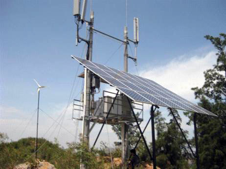 圖為配備了儲能電池的風光互補通信基站