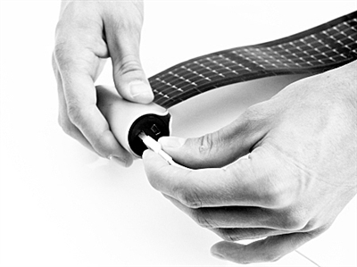 便攜卷軸式太陽能移動電源看上去和通常的移動電源沒有太大的區別,柱狀造型,通過USB口輸出——只是,它卻內置有柔性太陽能電池,需要的時候,握住背面的拉桿,就能把這太陽能電池像卷軸一樣拉出來。當充電板被完全展開,也就是設備吸收太陽能最快的時候。