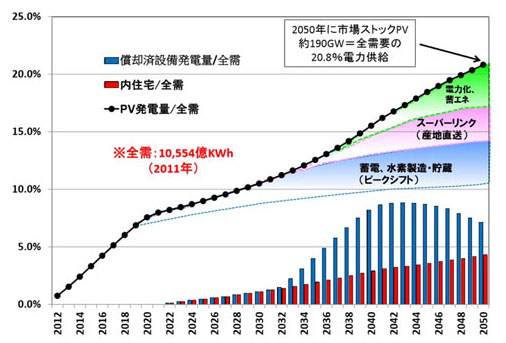 光伏電力在整體電力需求中所占的比例走勢(出處:JPEA)