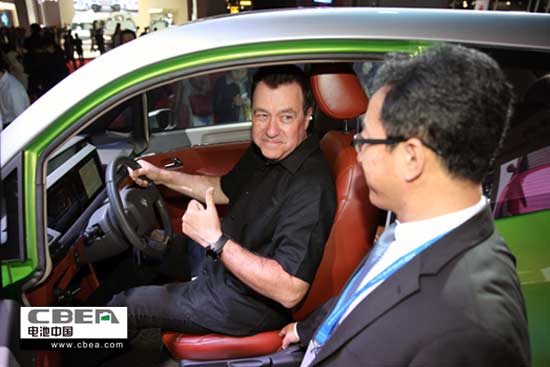 上海同捷科技股份有限公司董事長雷雨成博士(中)稱贊猛獅科技“戴樂•起步者”純電動(dòng)汽車