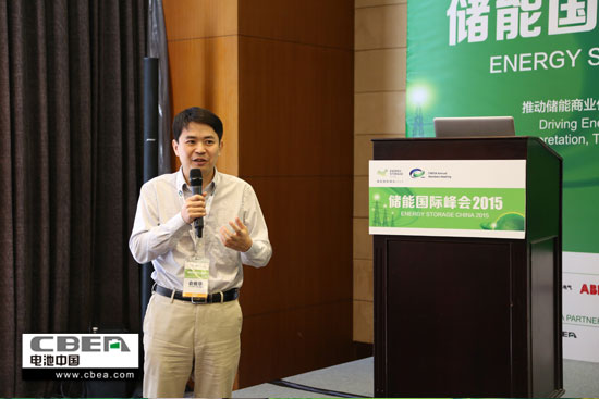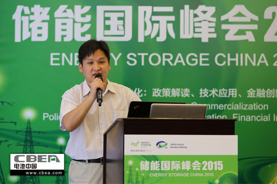 中關村儲能產業技術聯盟第二屆常務理事會副理事長胡迎輝做工作報告