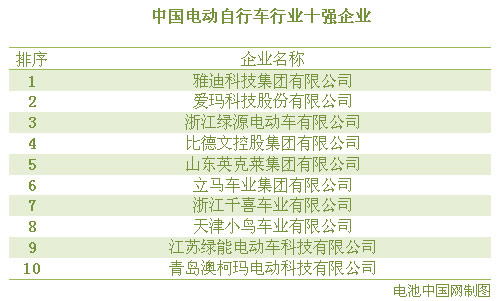 2014年度中國電動自行車行業十強企業榜發布