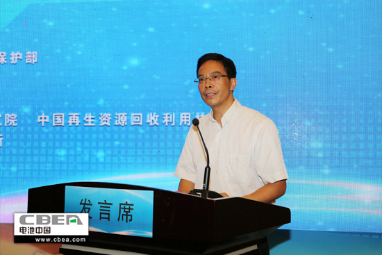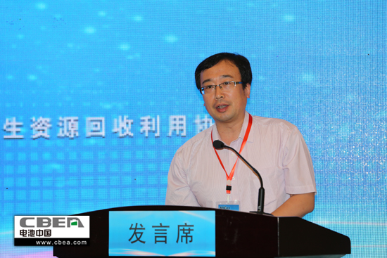中國電池工業協會理事長韓作樑在成立儀式上致辭