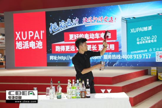 圖為企業展臺上的調酒表演