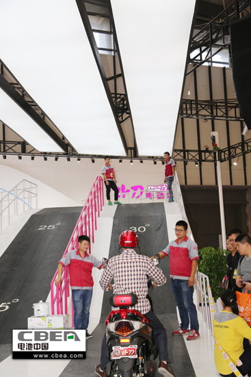 圖為企業展臺上舉行的試騎活動