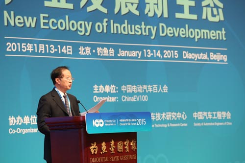 圖為陳清泰在中國電動汽車百人會2015年度論壇上講話