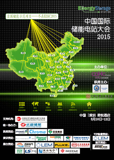 ESSC2015中國國際儲能電站大會暨頒獎盛典將于2015年05月10日-12日在深圳隆重舉行。作為國內最富盛名的儲能電站大會,屆時將邀請儲能領域的專家,包括國家能源局、科技部、發改委能源研究所、工信部、國家電網、南方電網、五大發電集團新能源公司、大學院校企業代表等權威人士1000余人,圍繞儲能電站的相關政策與標準、市場趨勢與投資建議、技術瓶頸與解決方案、項目示范與經驗分享等熱點話題展開。