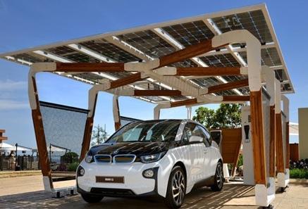 BMW公司針對旗下i系列車款,設計了專屬的太陽能充電車棚。日前,由BMW集團所屬BMW Designworks USA所設計、安置于美國加州Malibu的太陽能充電車棚(Solar Carport)已展開運作,安裝于車棚頂上的太陽能面板可為BMW i車款供電。