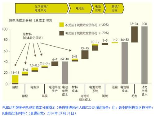 總的來(lái)看,吳輝認(rèn)為,汽車動(dòng)力鋰離子電池組的各個(gè)構(gòu)成成本中,共有約70%的成本是可以通過(guò)擴(kuò)大生產(chǎn)規(guī)模來(lái)降低成本的。這也是美國(guó)特斯拉(Tesla)為了大眾型EV的推出而提出要建造50億美元的超級(jí)電池工廠“Gigafactory”的主要原因所在。