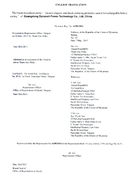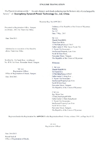 1. 一種蓄電池底部防滑減震墊 (An anti-slippery and shock-reducing mat for bottom side of a rechargeable battery ),注冊號:6499/2013。這種技術能很好地保護蓄電池,降低了意外發生的風險,使其在使用過程中的安全性得到極大的提升。