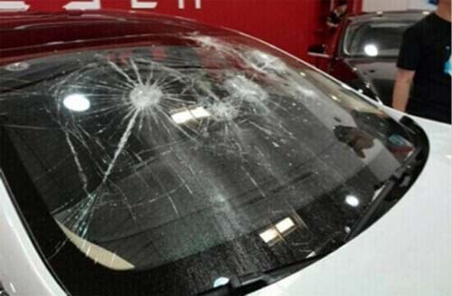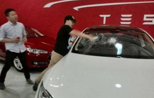 于鑫泉早已沒(méi)有了當(dāng)初的興奮。從特斯拉銷售人員手中接過(guò)車鑰匙之后,他迅速打開(kāi)車前蓋,拿出做牽引車輛用的黑色鉤子,向嶄新的特斯拉Model S擋風(fēng)玻璃狠狠地砸了下去?,F(xiàn)場(chǎng)所有人都愣住了。