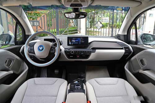 內飾方面,寶馬i3內飾設計非常具有科技感,雙輻式多功能方向盤造型獨特,其儀表盤采用液晶顯示屏設計。中控臺造型簡潔,中部的大尺寸獨立液晶顯示屏十分醒目。