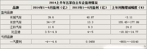 2014年已過了一半,又到中報放榜時。目前國內(nèi)已有多家上市車企陸續(xù)發(fā)布了上半年的業(yè)績報告,然而值得注意的是,雖然大部分國內(nèi)車企仍處于盈利狀態(tài),但今年車企業(yè)績與往年相比出現(xiàn)了嚴(yán)重的兩極分化趨勢,這其中以長安汽車和一汽夏利最為明顯。近日網(wǎng)通社通過對國內(nèi)五家自主車企(截至目前為止已公布的)上半年盈利狀況進(jìn)行調(diào)查后發(fā)現(xiàn),盡管長城汽車以39.6億的盈利額位居榜首,但其與去年同期相比整體呈下降趨勢。