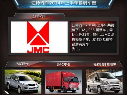 相比乘用車的兩極分化,商用車企利潤則出現(xiàn)了整體性下滑。從整體上看乘用車強商用車弱的格局仍未改變,雖然安凱客車、亞夏汽車等企業(yè)上半年業(yè)績報告顯示皆為盈利,但其凈利潤較上年同期則是大幅下滑。然而所幸商用車并非全軍覆沒,江鈴汽車上半年便實現(xiàn)了大幅增長。數(shù)據(jù)表示江鈴汽車2014年上半年凈利潤為11.6億元,同比上升約24.2%,其共銷售了132,938 輛整車,同比上升21%,其中以JMC 品牌輕型卡車、皮卡以及福特品牌商用車為主。