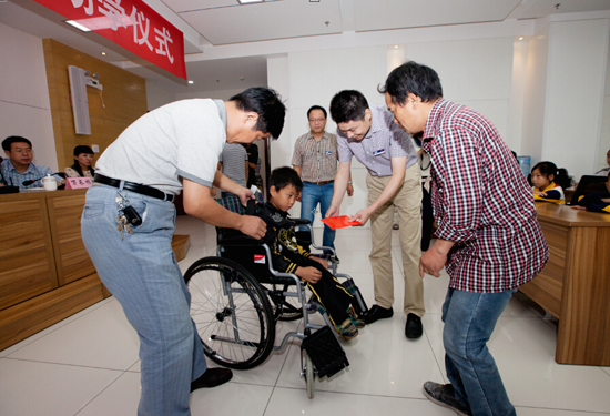 超威集團總裁辦主任郭常安為殘疾學童送上輪椅和助學金
