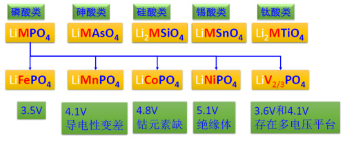 范未峰介紹,磷酸根由于具有較多的氧離子和配位空間,故往往可以與過渡金屬離子構成相互連接的空間聚聯結構,所以這類離子歸屬于另一個大類——聚陰離子化合物(聚陰離子正極材料)。