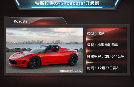 特斯拉Roadster是全球首款量產(chǎn)版電動敞篷跑車,其采用鋰電池技術,每次充滿電可行駛393公里,百公里加速時間為3.7秒,每公里耗電量0.135千瓦時。而在特斯拉Model S上市后,人們的注意力全被其所吸引,Roadster也很長時間沒有再被提及。隨著特斯拉CEO Elon Musk宣布將推出升級版Roadster,再次吊足了消費者胃口。