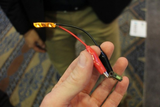 ProLogium在演示時該電池技術時接通一個LED,可以看到任何扭曲彎折之后,LED都照常發亮,甚至在裁切之后仍能正常供電。