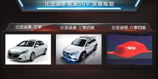 目前比亞迪已規劃了以“朝代”命名的車型系列,這些產品均是針對民用市場的新能源車型,其中多以“插電式混合動力”為主,覆蓋轎車、SUV以及MPV三種車型。按照目前的比亞迪產品規劃來看,唐、宋、元、明等SUV產品超半數席位,后續企業還規劃推兩款新能源SUV。王傳福說:“SUV是中國目前增長最迅猛的市場,我們也會強化這一細分市場。”