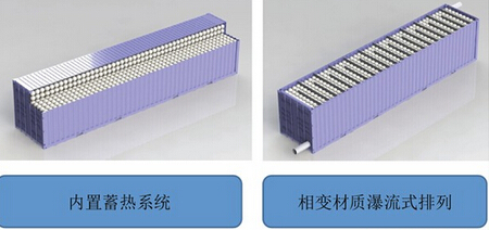 無數個儲熱球次序排列在集裝箱式的儲熱箱體中,就形成了一種獨特的集裝箱式相變儲熱系統。目前,儲熱球的排列方式有內置式和相變瀑流式兩種,可根據項目場地的大小選擇不同的排列方式,兩種儲熱箱在制作費用方面會有所差異。(見圖2)