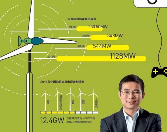 創業五年間,遠景每年新增裝機量實現了100%以上的增長。
