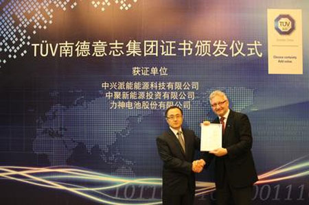天津力神儲能電池LP2770134獲TUV 南德認證證書