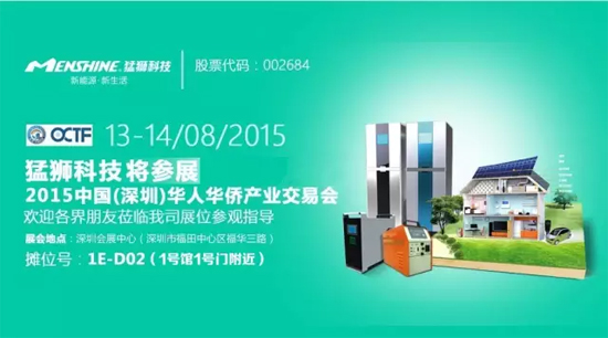 猛獅科技將于8月13日-14日在深圳會(huì)展中心參展2015中國(深圳)華人華僑產(chǎn)業(yè)交易會(huì),將展出光伏系統(tǒng)、儲(chǔ)能系統(tǒng)等新能源產(chǎn)品。