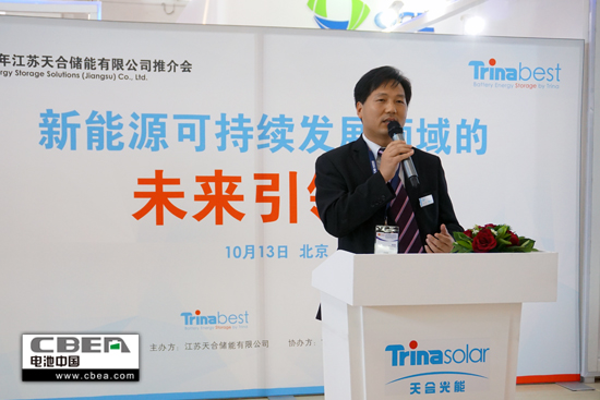 圖為天合光能儲能業務部總經理祁富俊介紹公司基本情況